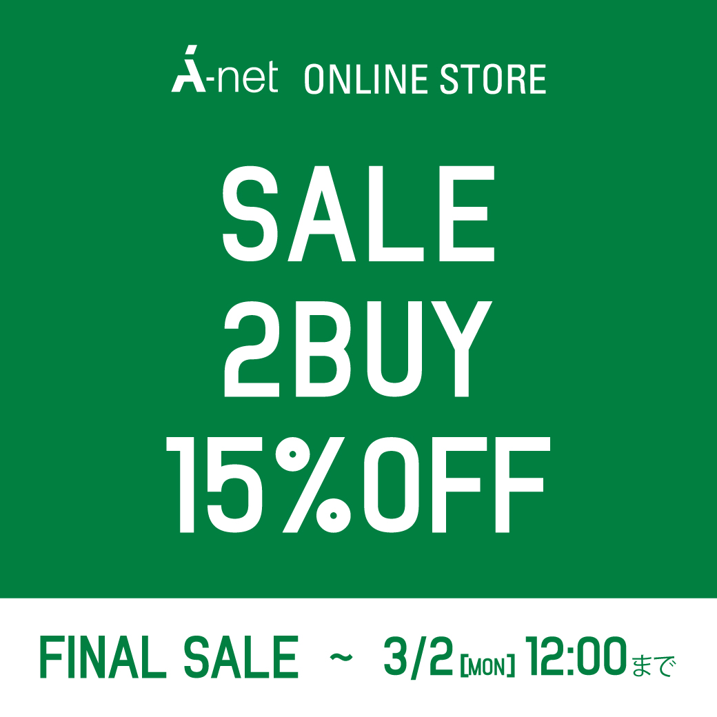 A-net ONLINE STOREにてセール商品を1回のご注文で2点以上お買い上げいただくと、お会計時にさらに15%OFFいたします!