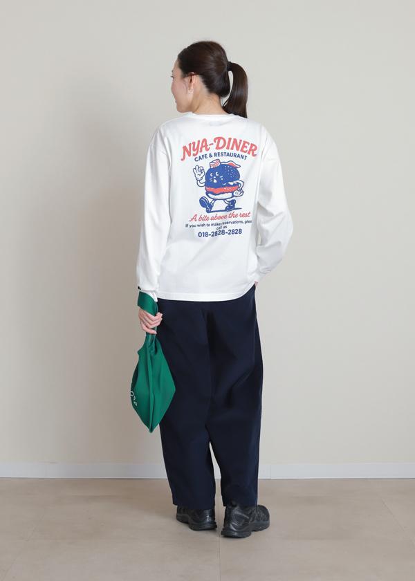 “MERRY CHRISTMAS”とNYA-をキラっとしたグリーンの箔プリントで表現。