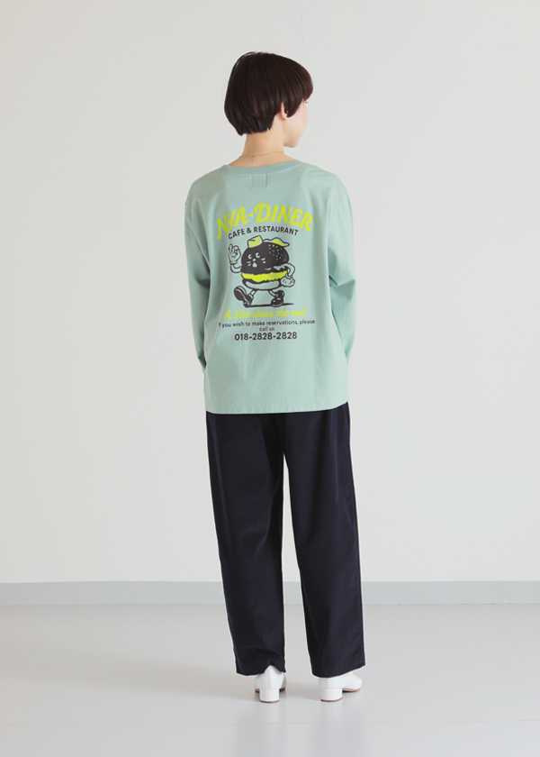 ユニークなグラフィックTシャツやキャッチーな小物をアクセントにした