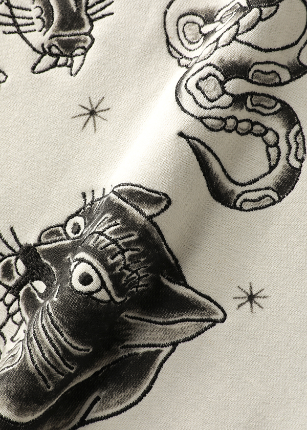 KENDAI / 1989年生まれ、千葉県出身。西大地、建太の双子の兄弟による刺繍アーティストユニット。〝刺繍は布の入れ墨〟をコンセプトに、ハンドメイドにこだわった布の彫師として2018年から活動を開始。横振りミシンを用いた作風が特徴的。数々のブランドとコラボレーションをするなど多彩な活動を行っている。