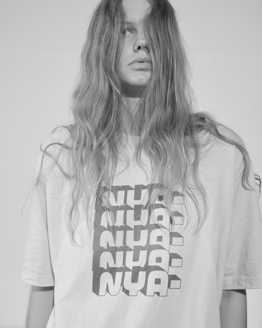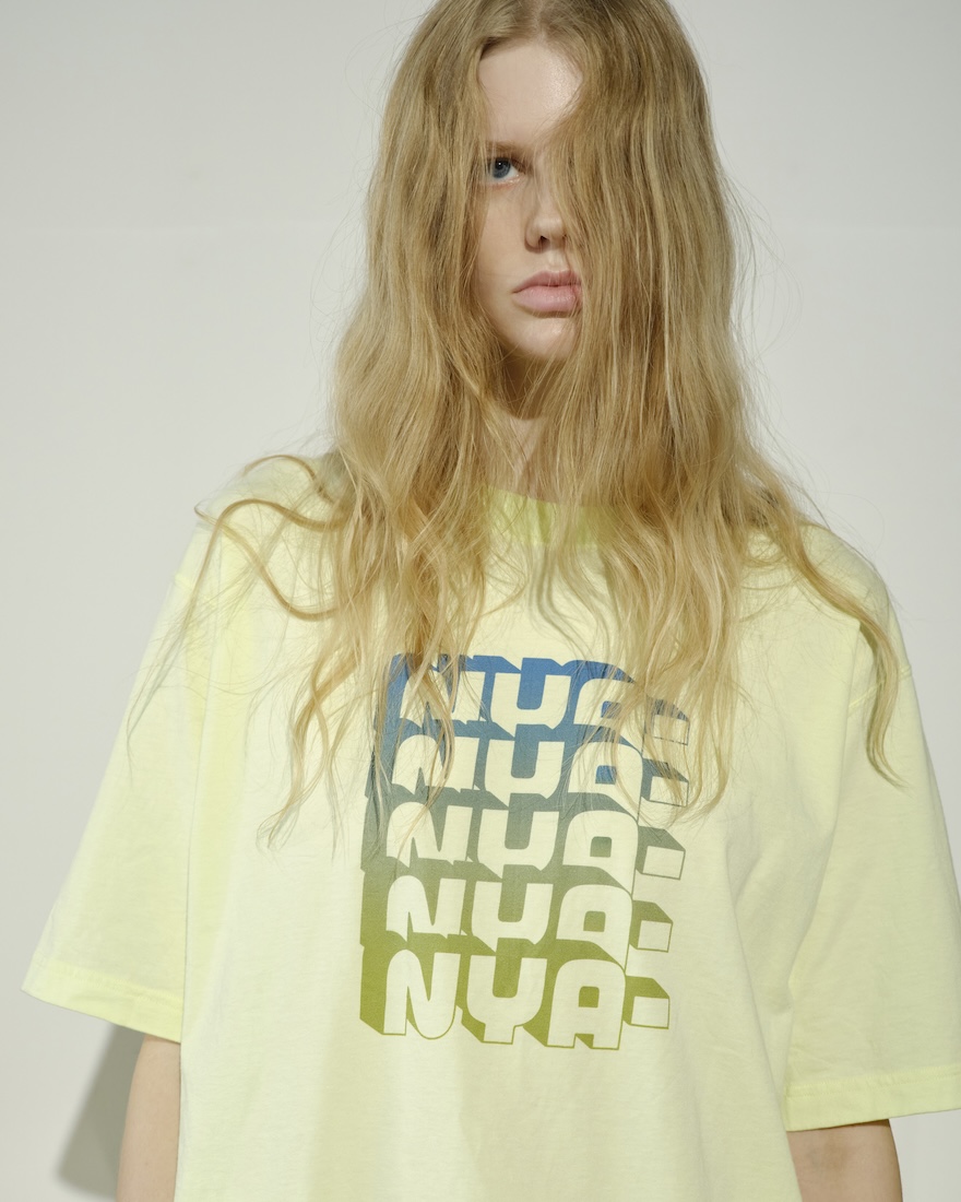 NYA-のロゴをグラデーションプリントで表現したTシャツ。