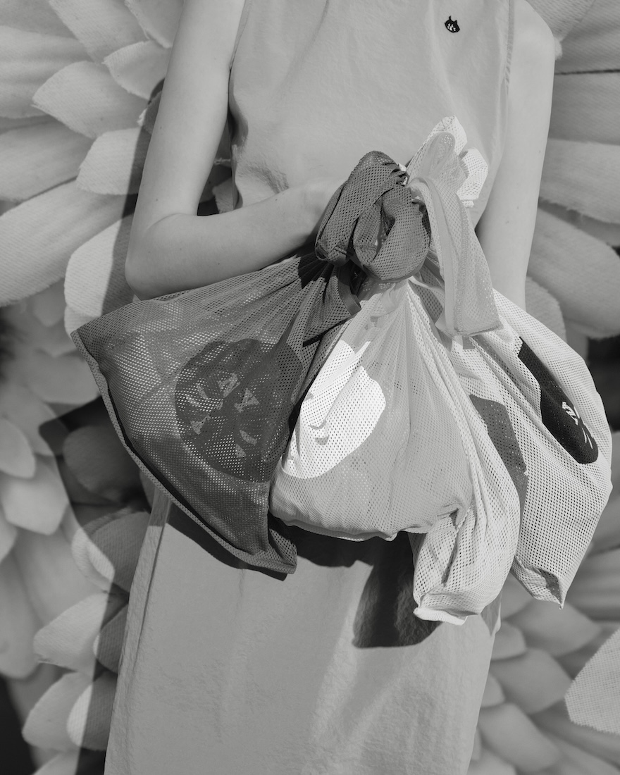 「N・Y・A」の文字で顔を表現した、遊び心溢れるメッシュバッグ。