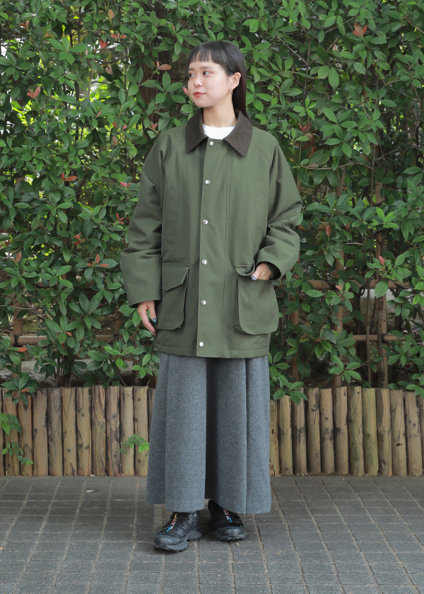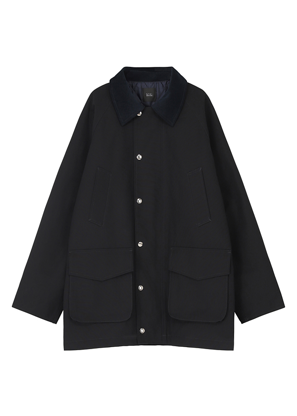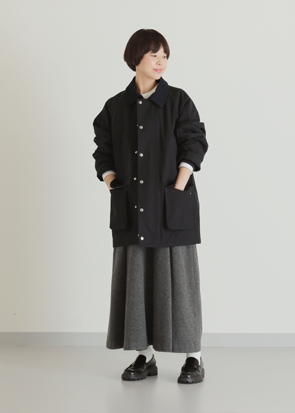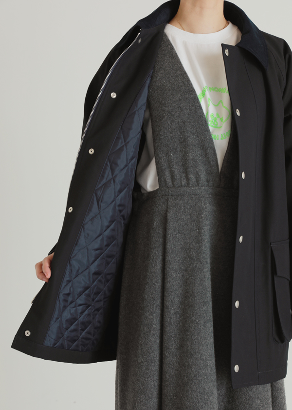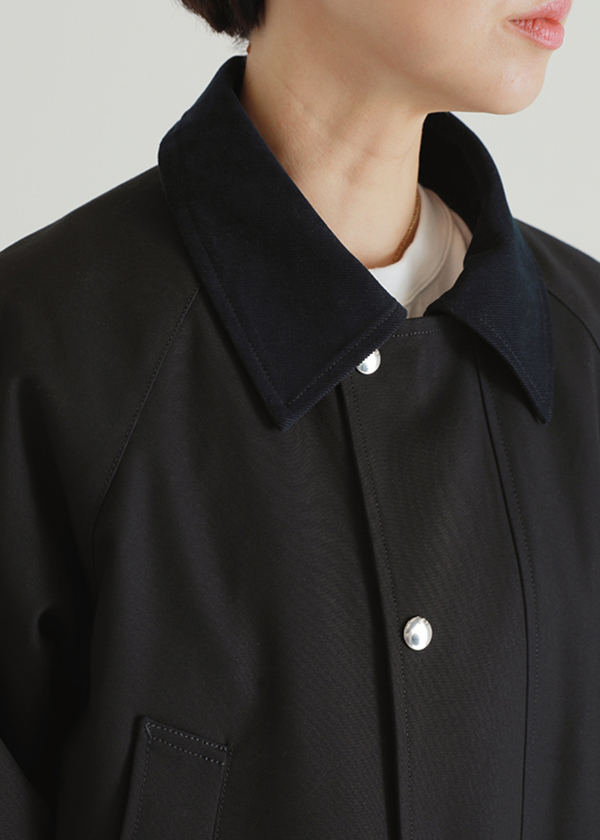 襟にコーデュロイ素材をあしらい、さりげない質感のコントラストが魅力のコートです。
