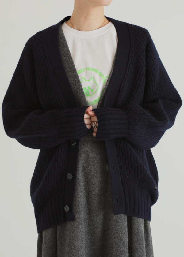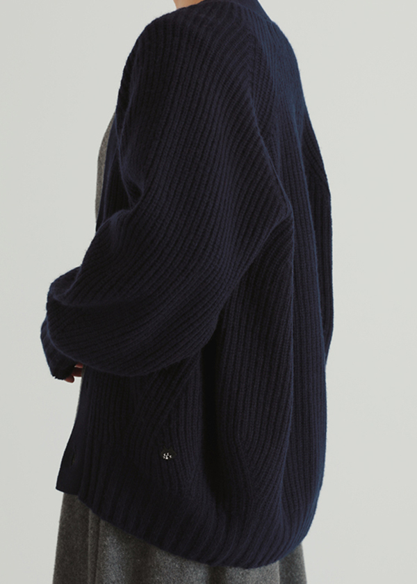 腰回りが隠れる丈で暖かく、本格的に寒くなる前にアウター感覚で楽しめるカーディガン。