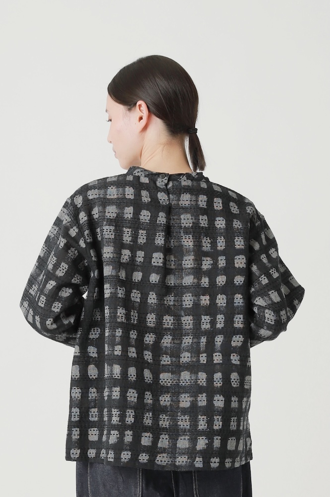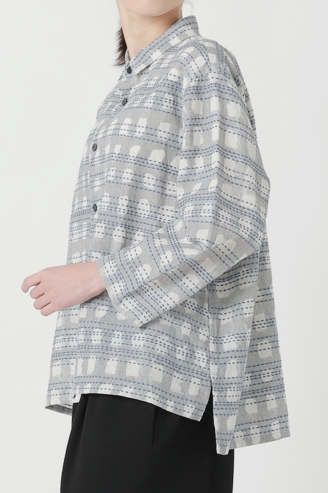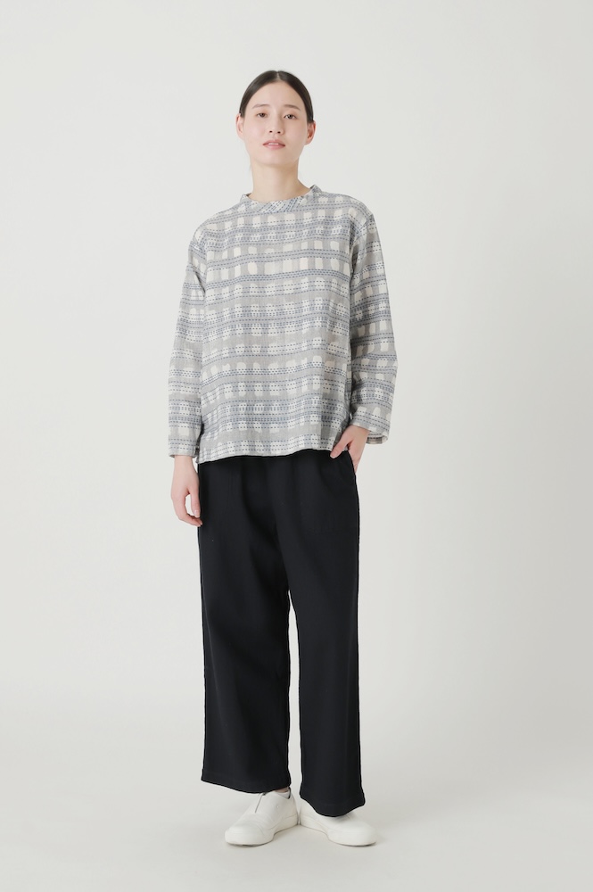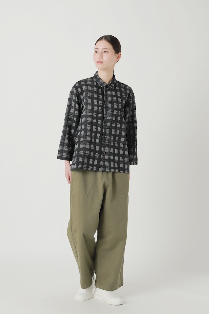 バンドカラーが顔まわりをすっきりと見せてくれるブラウス。