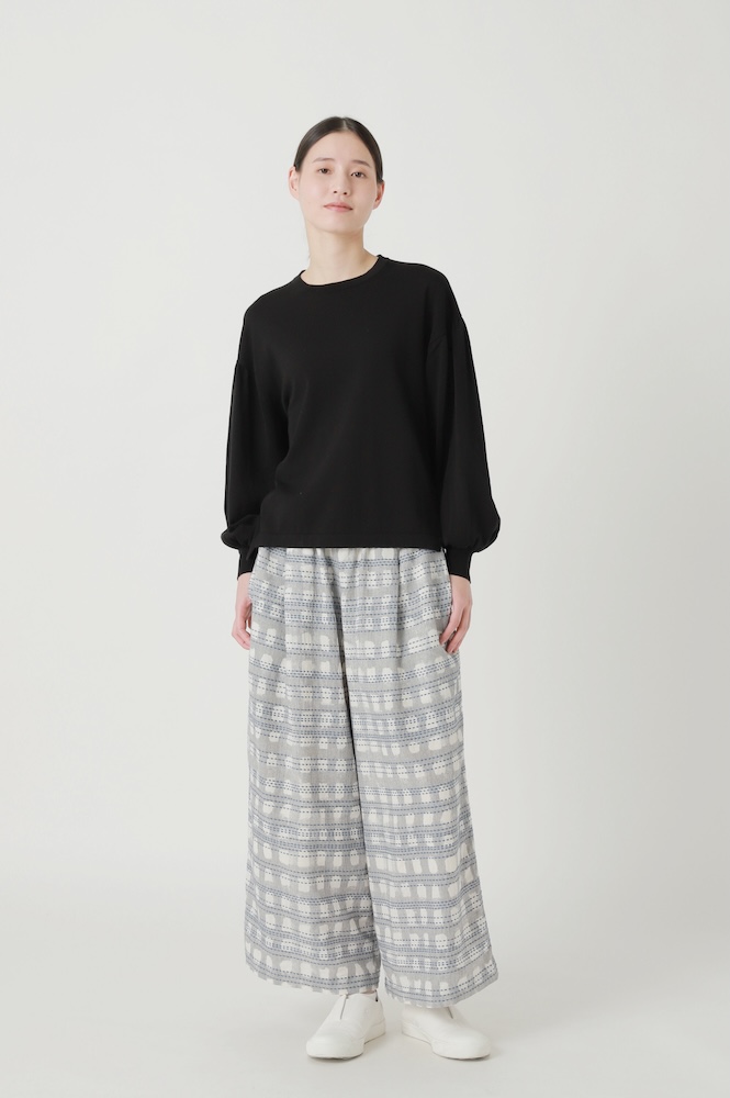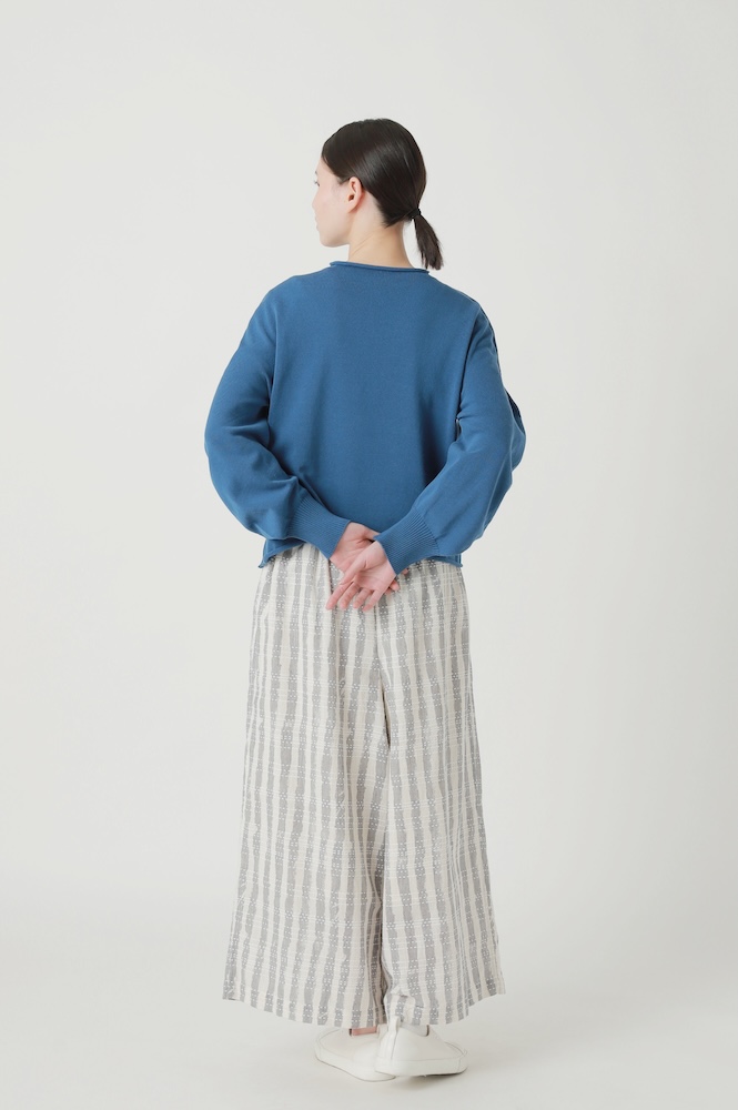 カジュアルになりすぎず、きれいめなパンツやスカートとも好相性です。