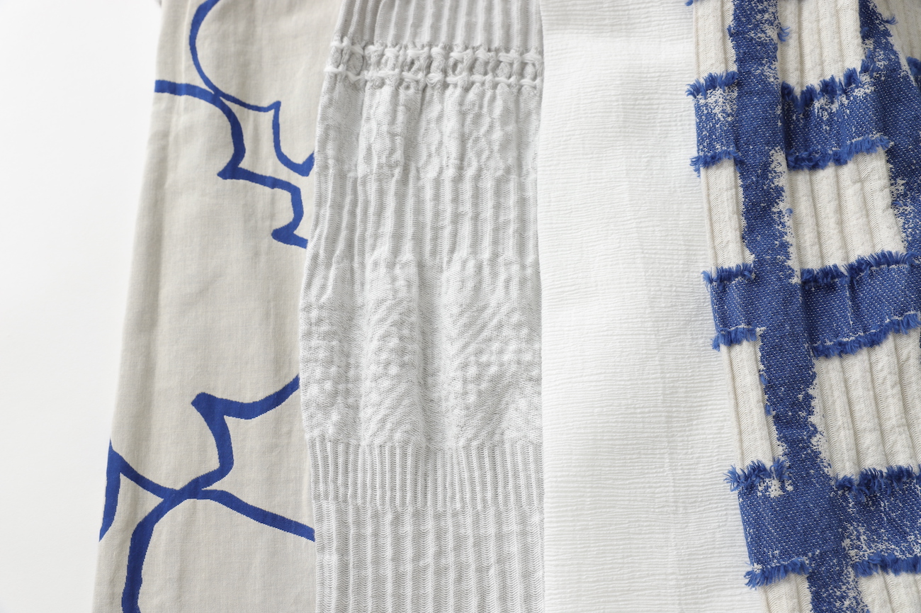 「シーズンを通して、クラフト感のあるデニムから、カットジャガードを取り入れたウェーブ素材やパーツストレッチになったダブルガーゼ、BIZENのウェーブ組織※1とポタリー柄のジャガードを組み合わせたものまで、素材やテクニックの異なる8種類のテキスタイルがウエアになって順次、店頭に並びます。あらためてBIZENの多彩さとその魅力を味わっていただければ」(サトウ)