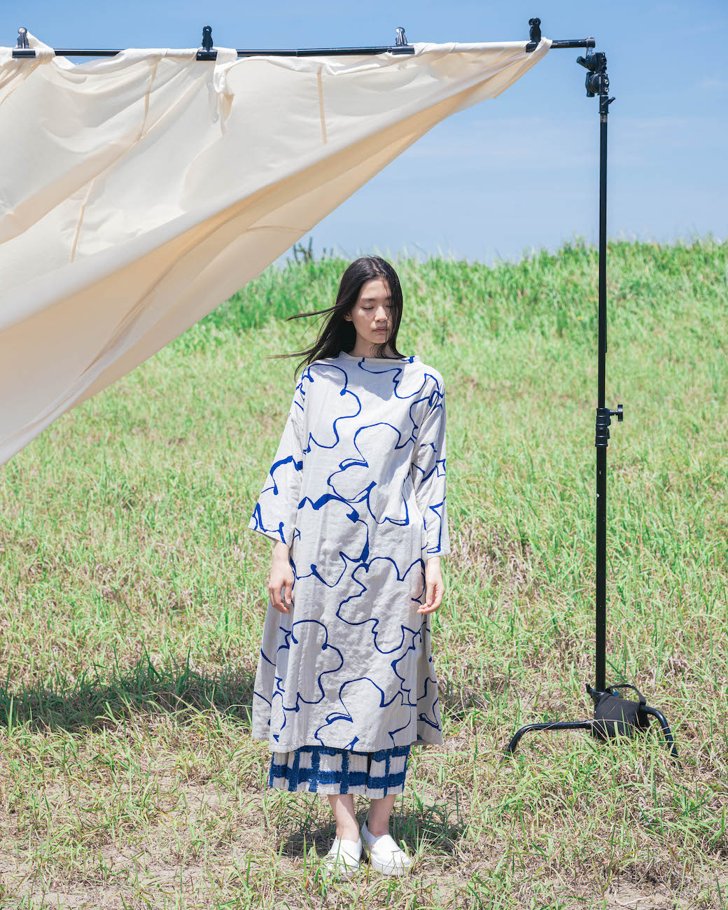 「象徴的なアイテムは、風になびくシャツ。軽く、やさしい風合いのシャツや、羽織にもなるシャツワンピース、意匠を凝らしたドレスシャツやシャツ地のジャケットなど、春夏はもちろん、シーズンを超えて長く着られるアイテムがバリエーション豊富に揃います」とデザイナーのサトウエミコは言います。